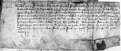 All the chroniclers describe Bournonville's rôle and the brutal treatment of the town after the assault,[15] but they disagree on the reasons for his sentence - he was condemned as a rebel against royal authority, perhaps because John I of Bourbon had claimed his head in vengeance for his half-brother Hector. Some lords in the royal army tried in vain to plead his case and on 26 May Bournonville was beheaded in the marketplace in Soissons, with his head then fixed on a lance and his body hung from a gibbet on the plain of Saint-Crépin-en-Chaye by the armpits[Sch 22][16] Many of his comrades such as the knight Pierre de Menou were also beheaded or hanged.[Sch 22] One or two of them were pardoned, such as Bournonville's man at arms Guillaume de Crannes thanks to a request from the Duke of Alençon.[17][18]