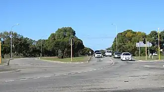 Ennis Avenue is a major road between Rockingham and its southern suburbs and is part of Australia's National Highway 1 for all of its length. It is a controlled access road and after leaving Rockingham has only four intersections (Willmott Drive, Safety Bay Road, Royal Palm Drive and Port Kennedy Drive)—the alternative route is Read Street and Warnbro Sound Avenue which runs roughly parallel to and west of Ennis Avenue.