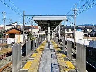 The station has a single unnumbered island platform, connected to a small, rustic wooden station building. The station building has automated ticket machines, and automated turnstiles which accept the NicePass smart card, as well as ET Card, a magnetic card ticketing system. The station is unattended.
