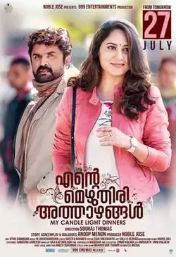 Ente Mezhuthiri Athazhangal (transl. My candle light dinners) is a 2018 Indian Malayalam-language romantic comedy film directed by Sooraj Tom. It was written by Anoop Menon who also stars in the lead role alongside Miya. The film also features an ensemble supporting cast that includes Dileesh Pothan, Lal Jose, Baiju, Alencier Ley Lopez, V. K. Prakash, Hannah Reji Koshy, Srikant Murali and Nisa NP, The songs featured in the film are composed by M. Jayachandran. Anoop Menon signed Rahul Raj to compose the background score of the movie.[2] The movie was released on 27 July 2018 to theatres and was well acclaimed.