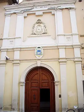 The palace was renovated and decorated during the episcopate of Bishop Giovanni Battista Bagalà Blasini (1876–1884), who had all the coats of arms of the bishops of Roselle and Grosseto painted in the main hall.[4] Between 1927 and 1928, Bishop Gustavo Matteoni expanded the building, raising part of it, and restored the façade facing the main street.[1]
