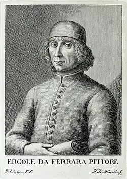 Ercole de' Roberti (c. 1451 – 1496), also known as Ercole Ferrarese or Ercole da Ferrara, was an Italian artist of the Early Renaissance and the School of Ferrara. He was profiled in Vasari's Le Vite delle più eccellenti pittori, scultori, ed architettori.