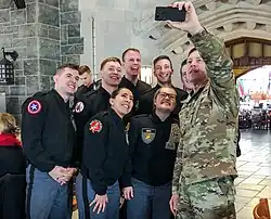 Wesley takes a photo with United States Military Academy cadets after a discussion on Multi-Domain Operations