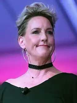 In early 2023, within hours of the Feb. 3 Norfolk Southern train derailment in East Palestine, Ohio, Brockovich started getting calls for assistance from the community about the toxic chemical fires.[22] She has been interviewed on various news outlets, from independent media[23] to national networks.[24][25] A few weeks later, Brockovich traveled to East Palestine, where she was interviewed by local media, and appeared at one of several high-profile town hall meetings on Friday night, Feb. 24th.[26] At the meeting, Brockovich and an attorney highlighted decades of toxic chemical train derailments.[27] Among Brockovich's many concerns is the potential groundwater contamination after chemicals were, as she describes it, dumped in a big hole in the ground and burned off.[22][28] A recurring theme of her appearances is that the nation has, for decades, in the name of profits over people, failed to undertake infrastructure improvements, enact tighter regulations, and adequately protect the health, safety and welfare of communities from long-term bodily harm and environmental damage. Brockovich continues to cite the Hinkley case and Flint water crisis, as well as the 2013 Lac-Megantic, Canada oil train catastrophe.[29][30]