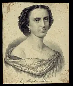 Erminia Borghi-Mamo made her opera stage debut in 1873, in Nice, in La forza del destino.[2] She was active in Italian opera for the next twenty years. "Still quite young, Mdlle. Borghi-Mamo is already mistress of the vocal art," an English writer reported in 1876, adding that "intelligence and soul are her characteristic qualities; she is all sympathy. The opening of her artistic career promises the most splendid future, for her voice is capable of the most delicate expression, and the most varied effects."[3] Her best-known roles included the title parts in Aida and Lucrezia Borgia, Santuzza in Cavalleria Rusticana, Margherita and Elena in Mefistofele,[4] and Leonora in Il trovatore. Her last performance was in 1893.[5]