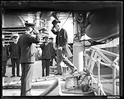 ![]() Lord Mayor of Sydney Ernest Samuel Marks boarding HNLMS Java visiting Sydney | |