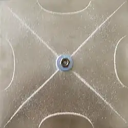 Chladni's method of creating Chladni figuresChladni figure on a rectangular plate supported in centerAnother mode of the same plate