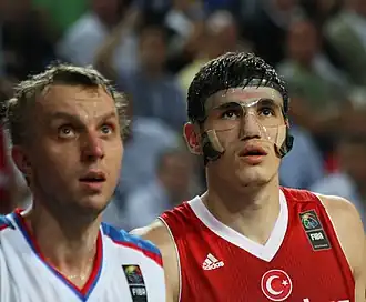 Since the 2003 Turkish Junior Basketball Championship held in Konya, there has been some controversy to İlyasova's age and national origin.[41] The controversy is fueled by the claim that a man named Arsen Ilyasov, born in 1984 in Bukhara, Uzbekistan, entered Turkey as an 18-year-old on 7 August 2002 and was never heard from again, while on 19 September 2002, a man named Semsettin Bulut claimed to have forgotten to register the birth of his now 15-year-old son, and did so as Ersan İlyasova, a Turkish citizen.[42][43] This claim, that İlyasova is actually Ilyasov and should be an Uzbek player, was officially put forth by the Uzbekistan Basketball Federation in a grievance, but FIBA ruled in the Turkish Basketball Federation's favor.[39] While this controversy was brewing, ESPN's Chad Ford referred to Ilyasova as "The 17-year-old forward from Uzbekistan is widely considered the best prospect to ever come out of Turkey."[44] Other biographies, while not claiming an Uzbek birth, still maintain a 1984 birth year.[45][46]