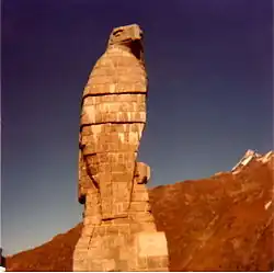 - ^ Even in the obituary for Werner Grimm in "Der Bund" No. 339, p. 2, 11. 8. 1965 was written: "In a most spirited way Werner Grimm used to recount his soldier's life, and with beaming eyes he liked to show pictures of the proud landmark at the top of the Simplon pass: the mighty granite eagle, which was established under his skilled management, a mark of quality for the engineer corps chief of the old mountain brigade 11 and a symbol of freedom in the sublime mountain world of the Valais."