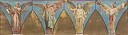 In 1882, Lefuel's successor Edmond Guillaume started making plans for the completion of the staircase. A team of Italian specialists created colorful mosaics for the vaulted ceilings, representing Victories holding palms and portraits of illustrious figures,[2][10] on a design by painter Jules-Eugène Lenepveu.[1]: 107 [11]