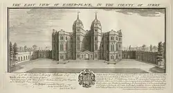 East View of Esher Place, Surrey, England in 1737. A line engraving drawn and engraved by the brothers Samuel and Nathaniel Buck. The print is dated to 1737.