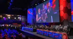 A 30,000 square-meter Esports Arena was established in the Luxor Hotel in Las Vegas in 2018, funded by Allied Esports and MGM Resorts International. Jud Hannigan of Allied Esports described Esports Arena Las Vegas as the esports equivalent of the Yankee Stadium, Madison Square Garden, or Wembley.[7][8] Chris Glove, co-director of the Nevada Esports Alliance, stated that the Las Vegas location "will start to give some shape to the esports identity of Las Vegas." The naming rights were sold to gaming headset company HyperX, and HyperX Esports Arena Las Vegas opened on March 22, 2018.[9]