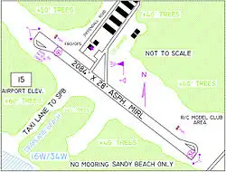 The 56 acre airport is surrounded by 588 acres of undisturbed and pristine wetlands and heavy forest. As the last light general aviation airport in Baltimore County, the airpark offers a 2,081 by 30 foot asphalt runway and a 3,000 by 300 foot water runway. Local aviation enthusiasts use it to fly single engine airplanes, ultralights, seaplanes, banner towing, and radio controlled aircraft.[3]