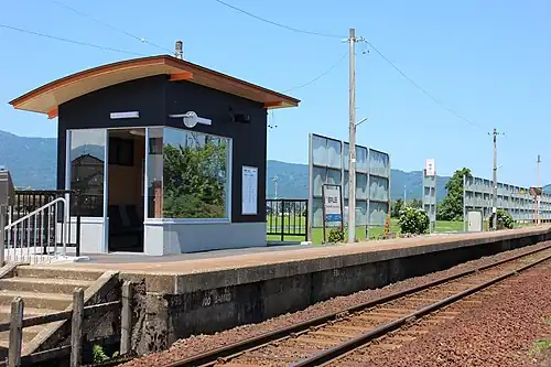 ![]() A new waiting room on the platform of Etchū-Yamada Station in June 2020 | |||||