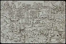 As early as in 1550 a mock Brazilian village was built by Rouen, France, on an occasion of the entry of king Henry II of France. For this purpose, Brazilian flora and fauna were imported, and typical Amerindian dwellings were built. The village was populated by 50 original Tabajara and Tupinambá people as well as about 250 French dressed as "natives".[1][2]