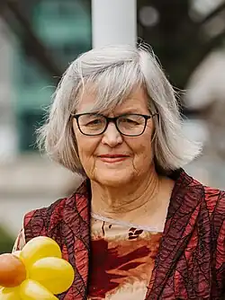 During the 2020 New Zealand election that was held on 17 October, Sage was re-elected to Parliament on the party list.[50] She also contested the Banks Peninsula electorate and came third place behind Labour's Tracey McLellan and National's Catherine Chu.[51] She was not retained as a minister in the Government's second term and was instead appointed chairperson of Parliament's environment committee as part of the cooperation agreement between the Labour Party and the Green Party.[31][52][53] She was also appointed the Green Party spokesperson for conservation, emergency management, the environment, forestry, land information, three waters, and oceans and fisheries.[31] On 9 November 2020, Sage was granted retention of the title "The Honourable" for life, in recognition of her term as a member of the Executive Council.[54]