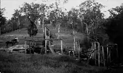 The locality was within the proclaimed boundaries of the Eungella Goldfield at the end of the 1800s and early 1900s. Access to the area was by a pack horse track or by a road via Nebo and Mount Britton.[5][6] The Eungella Range Road opened in 1909.[7] However damage had been incurred within twelve months, and repairs and a deviation instigated.[8] In 1923 the first car traveled on the Eungella Range in wet slippery conditions, and resorted to tying a heavy sapling behind the car to steady the car.[9] Landslips continue to be an issue following heavy rain.[10]