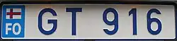 Until Brexit, UK registration plates could be issued in the common EU format. This format cannot be issued after the end of the transition period.[30] A "UK" sticker must be affixed at the rear of a vehicle with a registration plate displaying the EU emblem when driven abroad.[22] Note: Many cars also have EU flag on if issued pre-Brexit and cars can have EU flag only with the code "GB"; these plates are not valid for international use, a "UK" sticker must be affixed at the rear of the vehicle if driven abroad.[22]