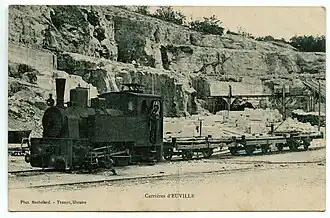 The Euville light railways (French: Réseaux des carrières Civet-Pommier & Cie et Fèvre & Cie) were an approximately 8.8 kilometres (5.5 mi) long light railway with a track gauge 1,000 mm (3 ft 3+38 in) and a narrow gauge with gauge of 600 mm (1 ft 11+58 in) near Euville in the département Meuse in the Grand Est region of France (until 2015 Lorraine).[1][2][3][4]