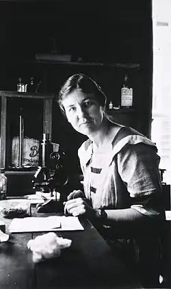 Tilden was born March 28, 1891, in Lawrence, Massachusetts to Harriette (née Butler) and Howard Benjamin Tilden. She completed an A.B. at Brown University in 1913.[1] While working with Hideyo Noguchi at the Rockefeller Institute for Medical Research as his editor, she quickly also became a laboratory technician in his lab and developed a staining technique for the routine diagnosis of syphilis in 1922. Tilden worked with Noguchi on trachoma, finding that Bacterium granulosis was still a potent infector after a year or more of dormancy. When Noguchi died in 1928, Tilden helped finish his work showing that oroya fever and verruga peruviana are the same disease. While in Noguchi's laboratory, she earned a M.S. (1926) and Ph.D. (1929) Columbia University.[2] Her dissertation, coauthored with Edgar G. Miller Jr., was titled, The Response of the Monkey (Macacus rhesus) to Withdrawal of Vitamin A from the Diet.[3] She was an assistant in bacteriology and immunology from 1928 to 1931 at Roosevelt. Tilden was a member of Sigma Xi and Sigma Delta Epsilon.[1]