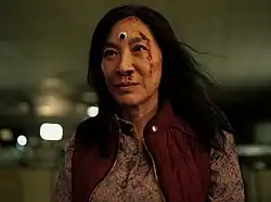 Rotten Tomatoes described her as "outstanding," and David Ehrlich of IndieWire called it the "greatest performance [she] has ever given."[21][22] Marya E. Gates of RogerEbert.com praised Yeoh as the "anchor of the film," highlighting her versatility—from martial arts prowess to comedic timing to expressing deep human emotion.[23] Maureen Ryan of Vanity Fair emphasized how Yeoh portrayed Evelyn with "melancholy, regret, resolve, and curiosity," making her performance "positively gripping."[24]