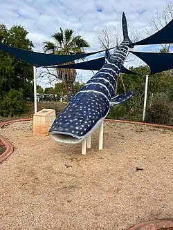 Exmouth is also home to two of Australia's Big Things: The Big Whale Shark (constructed 2002) and The Big Prawn (constructed 2005) both of which were constructed by Brian Paskins.[12][13]