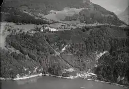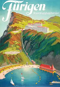 Fürigenbahn was a funicular railway above Lake Lucerne at Stansstad, Nidwalden, Switzerland. The line led from the resort in Harissenbucht, a bay of Lake Lucerne, at 437 m (1,434 ft) to the Hotel Fürigen at 639 m (2,096 ft). The track had a length of 375 m (1,230 ft) with a difference of elevation of 202 m (663 ft) and a maximum incline of 73%.[1][2] The hotel built it for clients' use in spring 1924,[1][2] but opened it to the public in 1927, after the Swiss Federal Assembly granted a license for 80 years. The funicular ceased operations in October 2005, the license expired in March 2007, and the hotel closed in 2010.