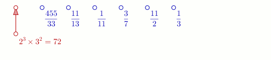 - for the first fraction f in the list for which nf is an integer, replace n by nf