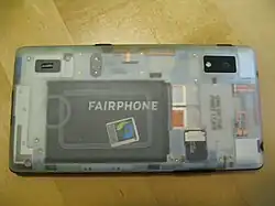 Fairphone is a Dutch electronics manufacturer that designs and produces smartphones and headphones. It aims to minimise the ethical and environmental impact of its devices by using recycled, fairtrade and conflict-free materials, maintaining fair labor conditions throughout its workforce and suppliers, and enabling users to easily repair their devices through modular design and by providing replacement parts.[2] As of June 2025, the company's most recent smartphone is the Fairphone 6, a highly modular and easily repairable device for which it plans to provide seven years of Android OS updates and eight years of security patches, as well as a five-year warranty.[3][4]