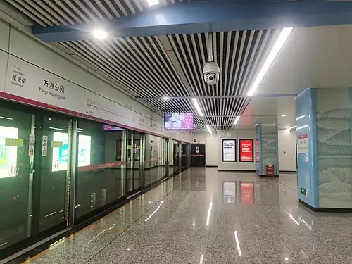 Fangzhougongyuan Station (Chinese: 方洲公园) is a station on Line 5 of the Suzhou Metro.[1] The station is located in Suzhou Industrial Park, Jiangsu. It has been in use since June 29, 2021, when Line 5 first opened to the public.[2]