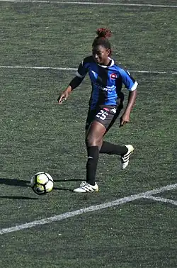 Fanta Zara Kamate playing for Fatih Vatan Spor in the 2018-19 Turkish Women's First Football League.