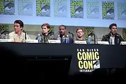 The cast of Fantastic Four, including Miles Teller, Kate Mara, Michael B. Jordan, Jamie Bell and Toby Kebbell at the 2015 San Diego Comic-Con to promote the film.