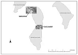 Fantome Island, also known by its Aboriginal name of Eumilli, is one of 13 islands that form part of the Great Palm Island group. It has an area of just 7.8 square kilometres (3.0 sq mi). It is located 65 kilometres (40 mi) north-north-west of Townsville. The historical occupation of the site is centred on two sections of the island - the lazaret is located on the low-lying coastal areas at the northern end of the Island; and the lock hospital site is located 3 kilometres (1.9 mi) south-east of the lazaret, at the centre of the Island. The archaeological remains of the sites have been interpreted according to historical research conducted prior to the site visit.[1][86]