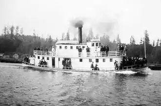 On the night of February 5, 1908, while tied to a dock at Coquille, Oregon, Favorite filled up with water and sank.[10] The next morning there was nothing visible of the steamer except the smokestack rising clear of the water.[10] The value of the vessel at the time was estimated to have been about $4,500.[10] At the time, Favorite was owned by the Coquille River Steamboat Company and was run under the command of Captain Ross.[10] The cause for the sinking was said to be a defective hull, and the vessel was reportedly in need of repair.[10] The sternwheeler Liberty, which had been running with the Favorite would be the only boat on the run between Bandon and Coquille until Favorite could be raised and repaired, or a new boat brought onto the route.[10]