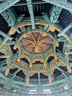 Between 688 and 689, Fazang was ordered by Empress Wu (at this time acting as regent) to build a high Avatamsaka-seat and bodhimanda of Eight Assemblies in Luoyang.[19] This event provided an opportunity for elucidating and promoting the Avatamsaka sutra, and further established rapport between Fazang and Empress Wu, who would soon after establish her dynasty in 690.[20] At this time, he also began his collaboration with the translator Devendraprajña.[19] During this period, Fazang maintained correspondence with his dharma friend Uisang.[21]
