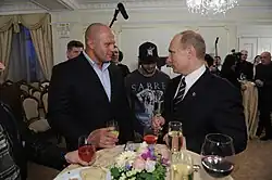 Emelianenko began his political career in 2010, being elected as a deputy of the Belgorod Regional Duma.[26] He subsequently became president of the Russian MMA Union (later honorary president and chairman of the supervisory board), and a staff member of Russia's Council of Physical Fitness & Sports.[27][28][29][30]