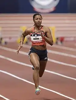 ![]() Brown-Edwards at the 2018 USA Indoor Track and Field Championships, where she finished 4th in the 60 m | |||||||||||||||