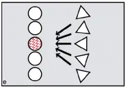 FCC proponents argue that menstruation became a key problem because it potentially creates conflicts between the females and conflicts between males. Menstruation has little social impact among chimpanzees or bonobos, since visible oestrus swellings are the focus of male attention. But once external signs of ovulation had been phased out in the human lineage, according to FCC, menstruation became salient as the one remaining external promise of fertility. Potentially, dominant males might exploit such information, repeatedly targeting newly cycling females at the expense of pregnant or nursing mothers (figure e). Those who might lose male investment needed to take control. According to FCC, older and more experienced females did this by initiating newly cycling females into their kin-based coalitions (figures f, g). Red ochre pigments allowed women to take conscious control over their signals, resisting any dominant male strategy of picking and choosing between them on biological grounds.[27][28] It is argued that because precise, sustained menstrual synchrony is difficult to achieve, painting up with blood-red pigments was the next best thing, enabling the benefits of artificial, ritually constructed synchrony.[29]