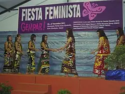 Feminism in Malaysia is championed primarily by activists within women's NGOs. There are setbacks to the apparent NGO-isnation of feminism in Malaysia, defined as the donor-led and institutionalisation of activism or 'Activism Inc.'[14] The funder-led agenda of women's NGOs in Malaysia resulted in the constraining of feminist activism to fulfill the requirement and targets set by donors. Other problems arise from the NGO-isation of feminism that appear at odds with the spirit of feminism, namely the inter- and intra-organisational income inequalities amongst women workers of NGOs resulting from unequal distribution of funding.