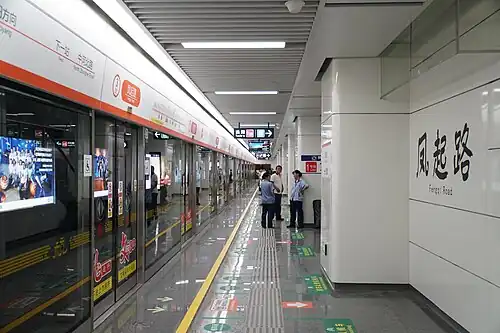 Fengqi Road (Chinese: 凤起路) is an interchange station between Lines 1 and 2 of the Hangzhou Metro in China.[1][2] Service on Line 1 commenced on 24 November 2012 along with the rest of the stations on Line 1, while service on Line 2 began on 3 July 2017. It is located in the Gongshu District of Hangzhou.