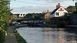 The Grand Union Canal runs through the southern outskirts of the town, and Fenny Lock is located in Simpson Road area to the east of Watling Street. It is notable both for the manually operated swing bridge which crosses the lock and for the very small rise in the lock (around 30 cm (12 in), the shallowest on the Grand Union Canal network). This was deemed necessary by the canal engineers because the next section northwards of the canal could not be made adequately watertight at reasonable cost without it.[13]