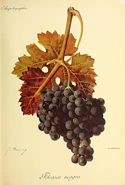 Fetească Neagră (Romanian pronunciation: [feˈte̯askə ˈne̯aɡrə]); English: Black Maiden) is an old pre-phylloxeric variety of Romanian grape,[1] cultivated mainly in several areas in the Romanian regions of Moldavia, Muntenia, Oltenia, Banat, Northern Dobruja[2] and also in the Republic of Moldova.