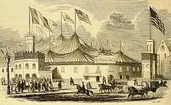 The site was previously the location of Madison Cottage,[a] which was a stagecoach stop for passengers headed north from the city. From 1853 to 1856 it was the site of Franconi's Hippodrome, a tent-like structure of canvas and wood which could accommodate up to 10,000 spectators who watched chariot races and other "Amusements of the Ancient Greeks and Romans".[2][b][3][4]