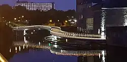 In March 2016, Bristol City Council approved plans for an S-shaped footbridge over the Floating Harbour, linking the development to Castle Park, despite its design obstructing navigation in the harbour and concerns that it would be visually intrusive.[24] The bridge cost £2.7 million and was opened on 6 April 2017.[25][26]
