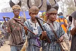 War dancers from different villages in the region perform on stage. They are armed with bows and arrows, short axes, shields and spears to relive scenes from wars from the previous years. There are also scenes of resistance and how Babatu was defeated.[4]