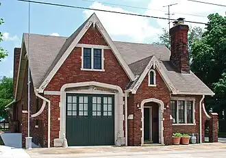 It is a 1+12-story fire station which was designed to appear residential, with elements of Tudor Revival style.[2]