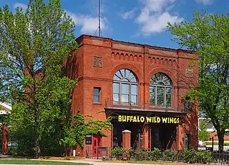 Fire Station No. 19, now the site of a Buffalo Wild Wings, and the architectural firm Station 19 Architects[2] in Minneapolis, Minnesota, United States is centered in the University of Minnesota, Minneapolis campus. The former Fire Station is listed on the National Register of Historic Places. It was built in 1893 in an era when Minneapolis was growing rapidly. Rapid development was bringing prosperity to Minneapolis, but it was also starting to tax the city's infrastructure. Residents and businesses on the east bank of the Mississippi River were demanding better fire protection, especially after the fire that consumed the University of Minnesota Old Main building in 1892 along with some grain elevators nearby. Fire Station No. 19 was built in a simple utilitarian style (unique to Minneapolis), yet it contained some touches of ornamentation. It was built with a bell tower that was later removed. The fire station was one of the last to house horse-drawn equipment, as late as 1922, it also had a hardwood floor apparatus bay. A newer Fire Station 19 was occupied in 1976 one block to the south.[3]