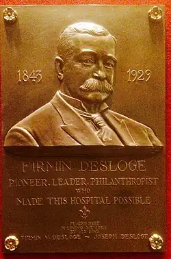 In February 1930, Saint Louis University received a $1 million bequest ($18,822,709 today[3]) from the estate of Firmin Vincent Desloge,[4] a member of the Desloge Family in America, who provided in his will, funds for a hospital to serve St. Louis University and to replace the old St. Mary's Hospital, both in St. Louis.[5] Desloge's wife, Lydia Desloge (née Lydia Holden Davis), donated another $100,000 to build a chapel next to the hospital.[6]