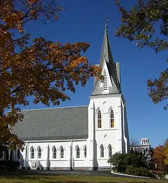 First Baptist Church of Wollaston is a historic Baptist church building in Wollaston, Massachusetts. Built in 1873 for a new congregation, and repeatedly enlarged, it is a fine example of Gothic Revival architecture, and one of the city's finest remaining wood-frame churches. The church was listed on the National Register of Historic Places in 1989.[1]