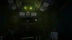 As with all Five Nights at Freddy's games, failing to defend oneself from the animatronics results in a jumpscare, causing a game over. However, in this game, the animatronics do not actively pursue the player; instead, a jumpscare occurs if the assigned tasks are not completed correctly. If the player dies, there is a chance for them to enter an Atari-style platformer minigame, reminiscent to the post-death minigames in Five Nights at Freddy's 2, where the player acts as Circus Baby delivering cupcakes to children. Completing this minigame in a specific manner unlocks a secret level on the fifth night that reintroduces the immobile survival aspect of the original Five Nights at Freddy's.[7] Completing all five nights unlocks additional features, including a "Custom Night" mode,[8] where the player selects from various modes and difficulty settings and tries to survive the night against a new set of animatronics.[9]